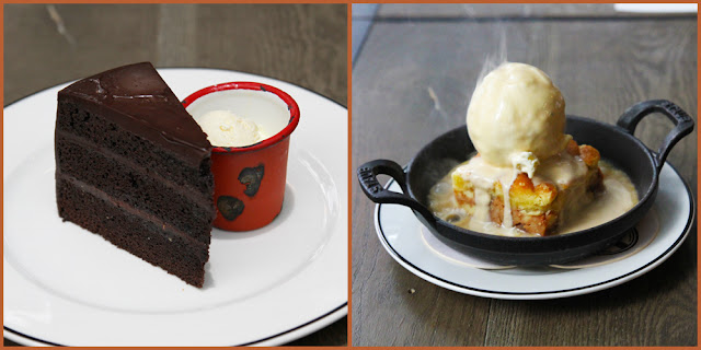 (L) Raspberry Chocolate Cake served with Vanilla Ice Cream & (R) Sizzling Apple Pie with Vanilla Ice-cream.